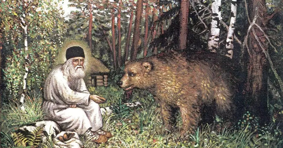 Spiritually, meeting this vitriol in-kind too often is impoverishing. It’s the natural response, of course, but Christ commands us to oppose the natural inclinations of eye for an eye. I think on my best days my anger is righteous, but that doesn’t sap its potential for self-destructiveness. I won’t be able to out-shout these people, they are literally the best at shouting. But the real response, the better approach, is so much harder. Fred Rogers is a needed and difficult reminder that gentleness is an achievable form of combat, that kindness is a formidable weapon in the culture war, that those and the other listed fruits of the Spirit aren’t just empty sentiment but an aspirational standard. Fred Rogers made sense of the wisdom that is foolishness to the world, embodying the love of Christ and the wisdom of men like Seraphim of Sarov, who said: